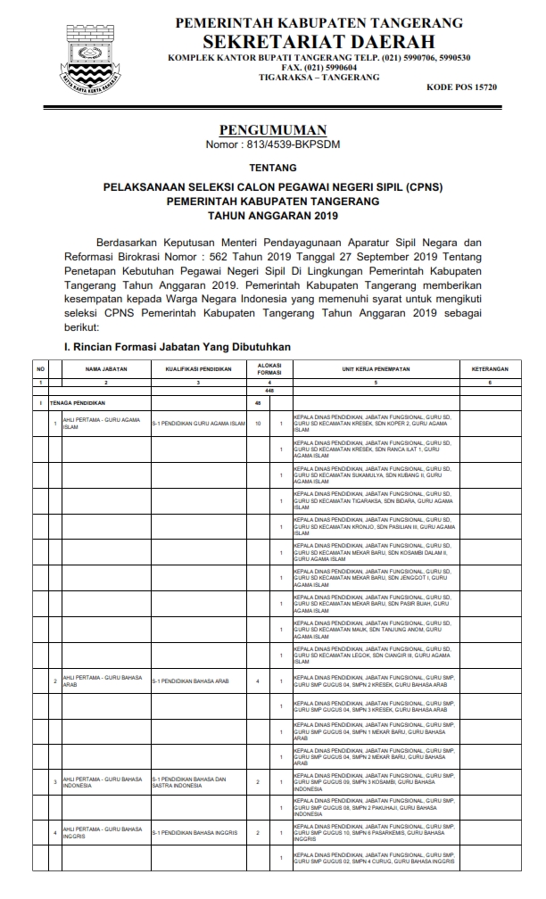 Lowongan Kerja Calon Asesor Sekolah dan Madrasah Mei 2021 ... from informasicpnsbumn.com Penjaga tahanan menjadi formasi dengan pelamar terbanyak pada cpns 2019. Berdasarkan penelusuran di situs cpns 2019, untuk formasi penjaga tahanan (pria) ini merupakan formasi pada rekrutmen kementerian hukum hoaks lowongan kerja pt pertamina untuk lulusan sma/smk. Selain itu juga ppdb setiap tahunnya dan berita nasional lainnya. Official instagram of lokernas pusat informasi lowongan kerja bumn, cpns, swasta, medis , dosen sma/smk, d3, d4/s1, s2 semua jurusan www.lokernas.com. Dari 2.875 lowongan cpns penjaga tahanan itu, 2.774 di antaranya adapun 101 lowongan dibuka bagi pelamar penerimaan cpns penjaga tahanan dari kategori formasi khusus golongan jabatan pns di awal masa kerja ditentukan, salah satunya oleh ijazah yang dipakai mendaftar seleksi cpns. Keputusan panitia pelaksana pengadaan calon pegawai negeri sipil di lingkungan pemerintah kota sawahlunto tahun anggaran 2013 bersifat mutlak dan tidak dapat diganggu gugat. Lowongan bumn cpns swasta medis dan dosen april 2021. Dibawah ini merupakan beberapa informasi yang telah kami himpun mengenai lowongan kerja cpns terbaru pada bulan juli tahun 2021 dari sumber informasi lowongan kerja terpercaya, semoga.